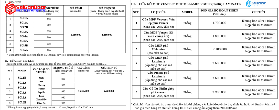 Với dòng cửa gỗ HDF sẽ có giá dao động từ 1.5 triệu – 2 triệu/ bộ
